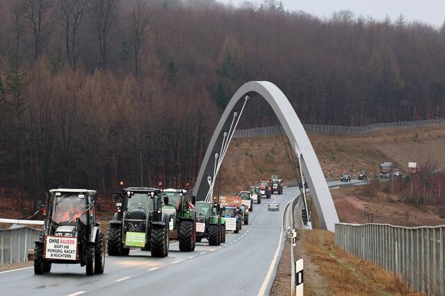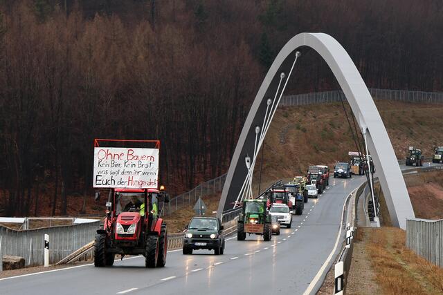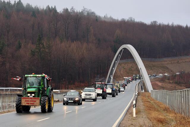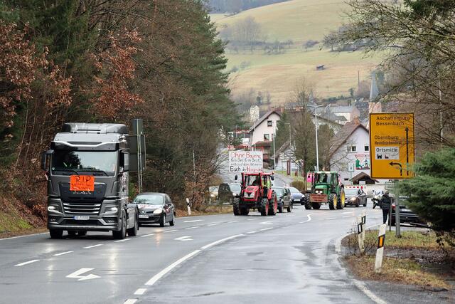 Ab 9 Uhr war der Demonstrationszug von Mömbris nach Marktheidenfeld unterwegs. Start war im Hutzelgrund, von wo es über Schimborn, Sailauf, Bessenbach und Mespelbrunn-Hessenthal über die Landstraßen weiterging. Neben den Landwirten nahmen auch Handwerker und andere Unternehmer, sowie Privatleute mit PKW teil.