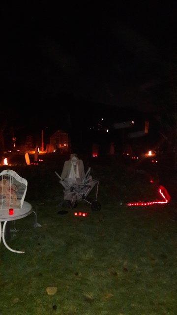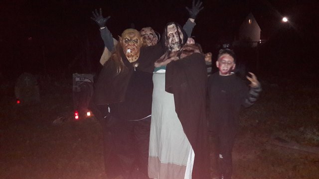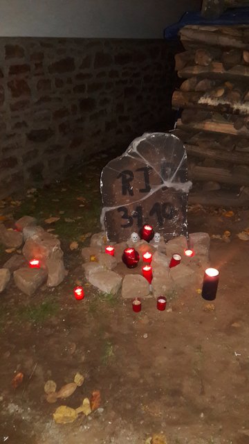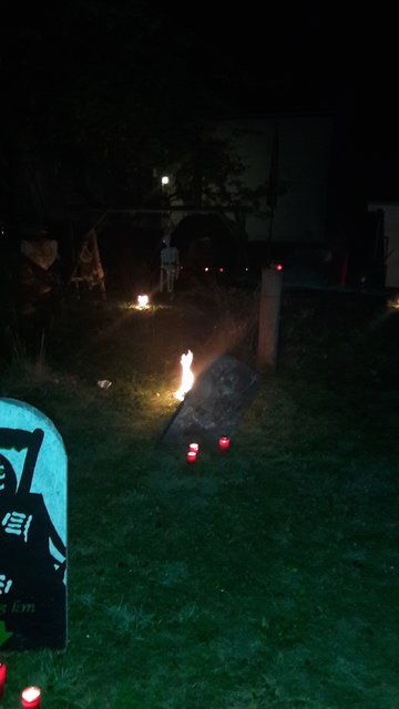 Dieses Jahr waren auch ganz viele Bonbon Besucher dabei und der eine oder andere traute sich, unserem Geist durch den Grusel Rundgang zu folgen. Wenn die Glocke ertönt dann geht es für die Mutigen los. Da weinte eine Braut am Grab auf dem Friedhof, Hände schauen aus den Gräbern heraus und greifen nach Besuchern. Was macht denn der Druide dort?? Der Henker schmiss mit Knochen um sich und Zombies verfolgten die Gruppe...an Ketten gefesselt.