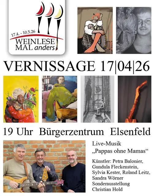 Bereits am Freitag, den 17.4. um 19 Uhr findet im Foyer des Bürgerzentrum eine Vernissage mit Live Musik statt, zu der Sie herzlich eingeladen sind.
