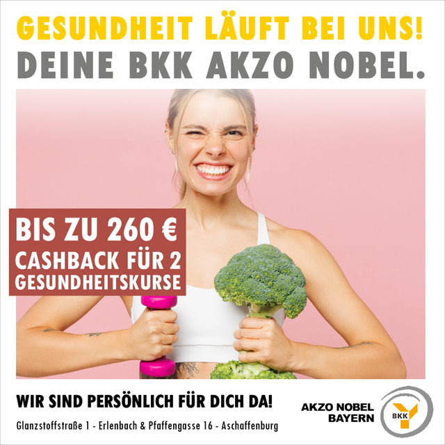 Für wen das alles nicht das Richtige ist, und wer sich aber dennoch bewegen und gesund bleiben will, dem seien die Gesundheitskurse der BKK Akzo Nobel ans Herz gelegt. Wir übernehmen zwei Kurse im Jahr mit jeweils bis zu 130 Euro. Hier gibts weitere Infos: BKK Gesundheitskurse