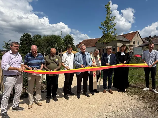 Den kirchlichen Segen sprachen Pfarrerin Romina Englert und Monsignore Franz Leipold. Sie bezeichneten die neuen Anlagen als „kleines Paradies mitten in Eschau – ein Ort der Freude, Begegnung und Kraft“. Die neuen Spielplätze verbinden die Generationen und bereichern das örtliche Leben. Der Leiter des Amtes für Ländliche Entwicklung Unterfranken, Jürgen Eisentraut, würdigte die Spielplätze als ideale Treffpunkte für alle Generationen. Ralf Werneke vom Planungsbüro Werneke, Hanau, betonte, dass beim Roden der Flächen viele Sandsteine gefunden wurden, welche nachhaltig in das Gelände integriert wurden.