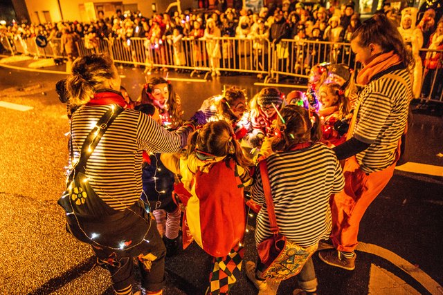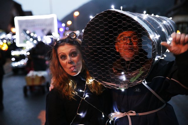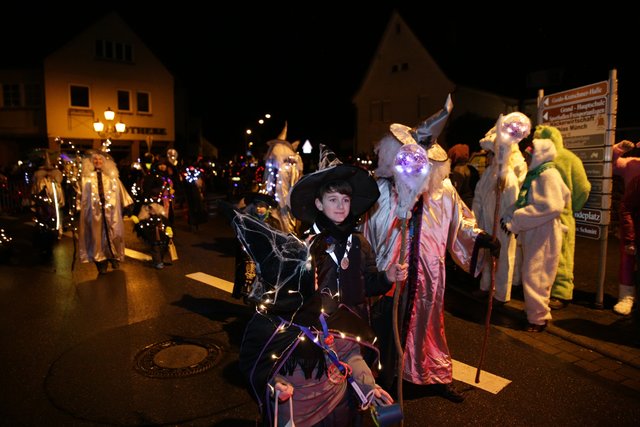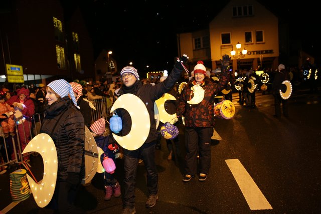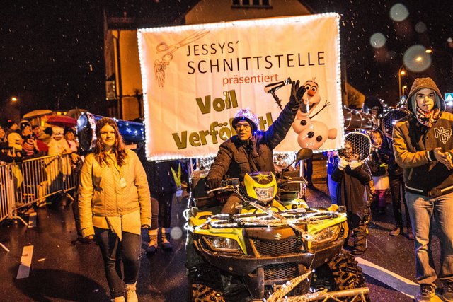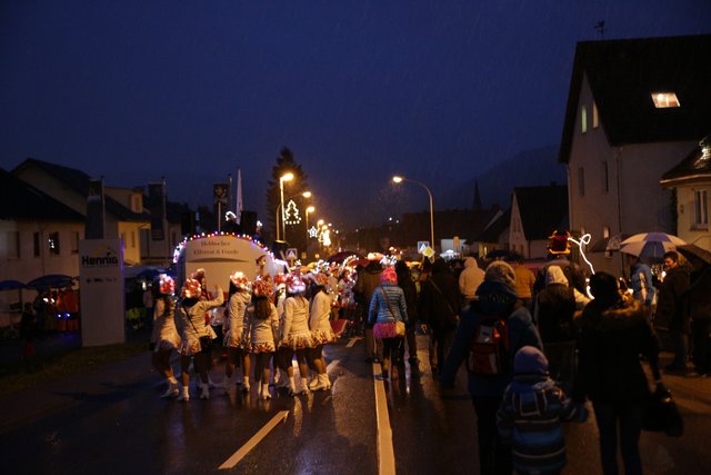 Immer wieder setzen Schnee/Regenschauer ein, ein schöner lichterfroher Zug mit vielen Teilnehmern konnten die Zuschauer genießen.