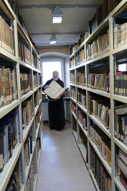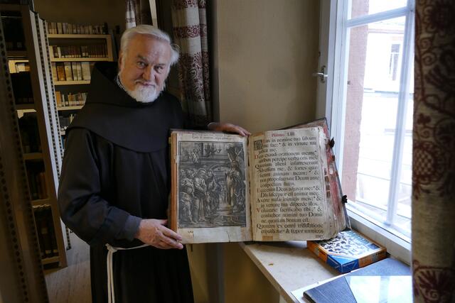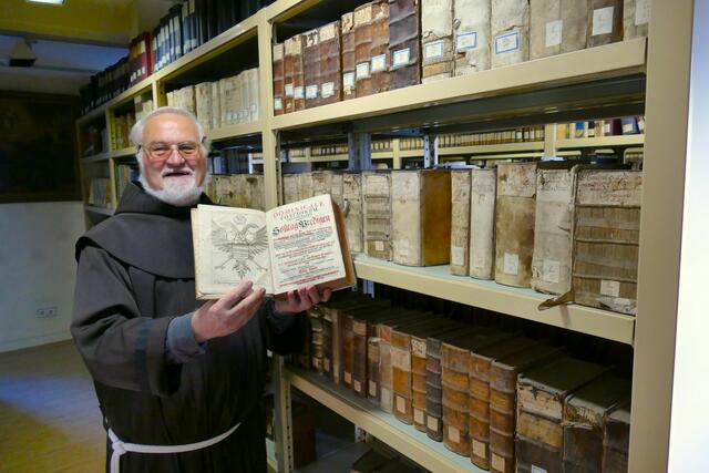 Großheubach/Engelberg. Die Überschrift dieses Artikels mag für manche Leserin oder für manchen Leser etwas seltsam erscheinen, hat aber seine Berechtigung. Pater Damian Bieger OFM ist für die deutsche Franziskanerprovinz der Beauftragte für Geschichte & kulturelles Erbe. Der Ordenshistoriker kümmert sich um die vielen Nachlassenschaften in der deutschen Ordensprovinz. Alle franziskanischen Klöster haben von der Gründungzeit ausgehend Bibliotheken geführt, die durch Sammeln und Nachlassübergaben ständig wuchsen. Oft war dann bei einer Auflösung eines Franziskanerklosters schnell das Problem zu lösen, was mit den vorhandenen, oft wertvollen Büchern geschehen solle. Keinesfalls will der Franziskanerorden, dass vorhandene Bibliotheken zergliedert werden. Historische Bibliotheken seien Kulturgut und mehr „als die Summe ihrer Bücher“. Pater Damien, er ist studierter Theologe und Historiker gleichermaßen, betreibt franziskanischen Kulturschutz. Im Gespräch mit ihm war seine Leidenschaft, historisches Kulturgut für die nachfolgenden Generationen zu erhalten, deutlich zu spüren. In der vergangenen Woche erfolgte die Übergabe der Klosterbibliothek, die Pater Damian persönlich begleitete.