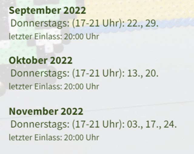 Öffnungszeiten Februar - November '22