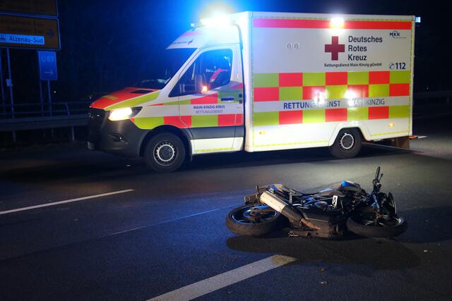 Kurz vor 19.30 Uhr bog der Fahrer eines weißen Kleintransporters von Karlstein kommend von der Staatsstraße 2443 nach links auf die A45 in Richtung Hanau ab. Vermutlich übersah er dabei einen entgegenkommenden Motorradfahrer, welcher mit dem Transporter kollidierte und stürzte. Der Transporterfahrer setzte seine Fahrt fort, ohne sich um den Unfall zu kümmern.