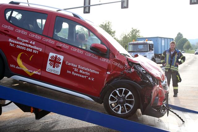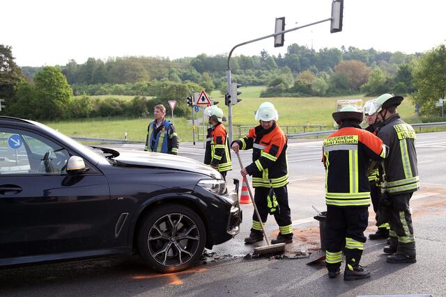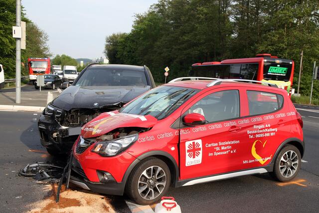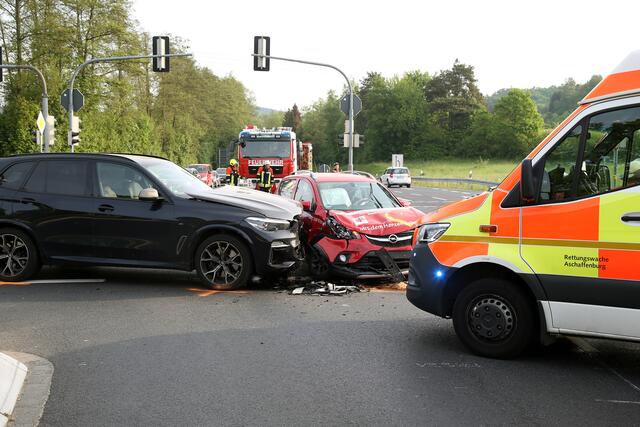 Kurz nach 7 Uhr wollte eine Opelfahrerin von Laufach kommend am Hösbacher Stachus von der B26 in Richtung Hösbach-Bahnhof abbiegen. Vermutlich übersah sie das Rotlicht der Ampelkreuzung und kollidierte frontal mit einem entgegenkommenden BMW.