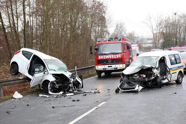 Zwei Schwerverletzte und zwei schrottreife Fahrzeuge sind die Bilanz eines Verkehrsunfalls auf der B469 bei Kleinheubach am Dienstagvormittag.