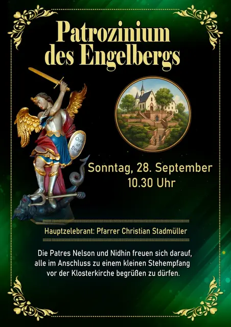 Das Fest steht im Zeichen einer guten Ökumene zwischen pfarr-und klosterkatholischen Gläubigen, sowie allen interessierten Engelbergfreunden. Pater Nelson, Pater Nidhin und Pfarrer Stadtmüller laden ALLE herzlich ein, gemeinsam mit ihnen zu feiern und beim anschließenden Stehempfang ins Gespräch zu kommen.