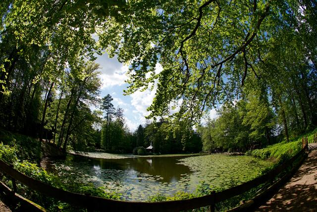 Zwei attraktive Ziele im Odenwald: Der Englische Garten zu Eulbach und das einstige Römerbad bei Würzberg.