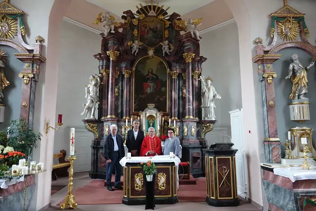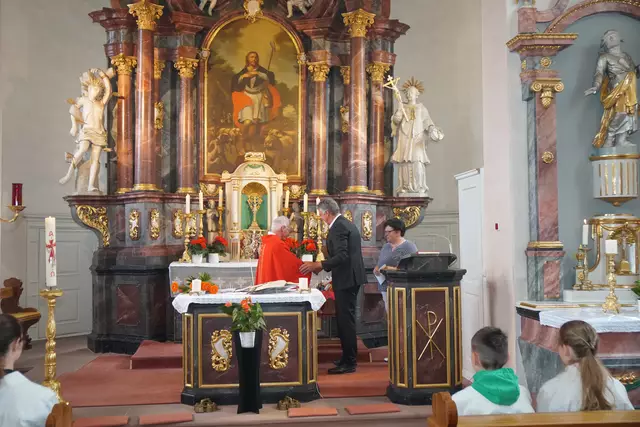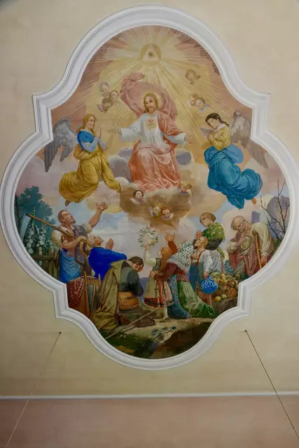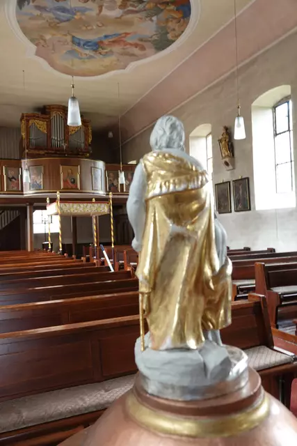 - Deckengemälde in der katholischen Pfarrkirche St. Mauritius in Heppdiel, PG Eichenbühl.