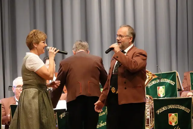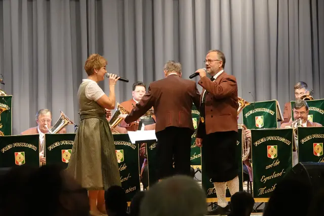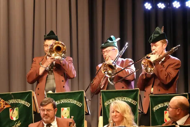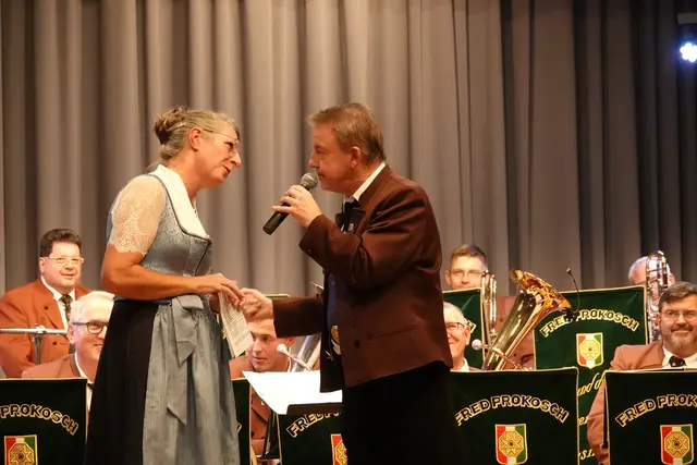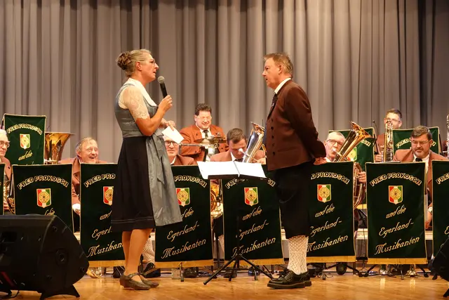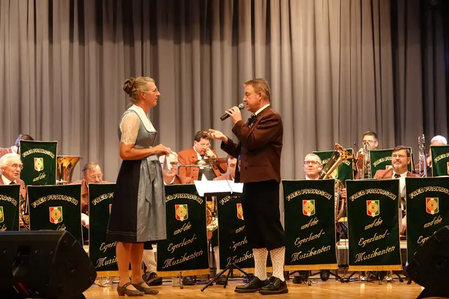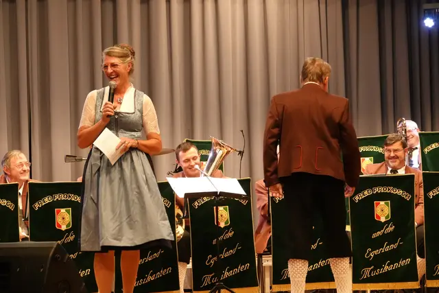 Schon beim Einzug der zwei Dutzend Musikerinnen und Musiker war die Vorfreude im Saal spürbar. Doch in diesem Jahr gab es eine besondere Premiere: Erstmals seit fast 30 Jahren stand nicht Fred Prokosch am Dirigentenpult, sondern ein Gastdirigent. Aus gesundheitlichen Gründen musste Prokosch pausieren und so übernahm Edi Sagert die musikalische Leitung – er gilt als ein echter Profi auf dem Gebiet der Egerländer Musik.