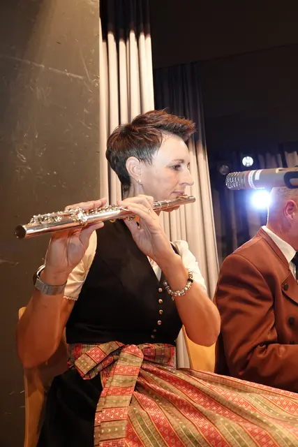 Das Gesangsduo Andrea Bachert und Klaus Lang sorgten mit ihren Beiträgen für Abwechslung und setzten besondere Akzente. Solistin Dörthe Braun faszinierte an der Querflöte mit der bekannten Filmmelodie „Dornenvögel“und erhielt reichlich Applaus vom Publikum und einen wertschätzenden Handkuss vom Dirigenten.