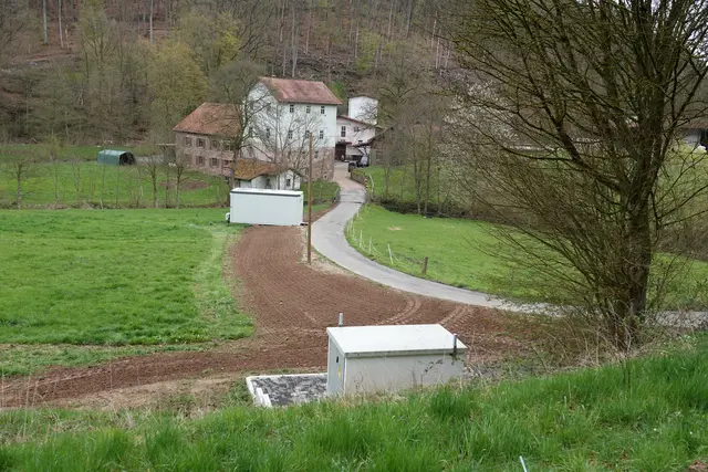 Das Tal, sonst ein stiller, fast verwunschener Korridor zwischen Waldhängen, Mühlen und Bachlauf, klingt nun nach Maschinen, nach Metall, nach Veränderung.