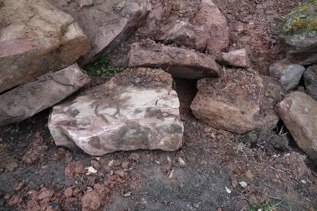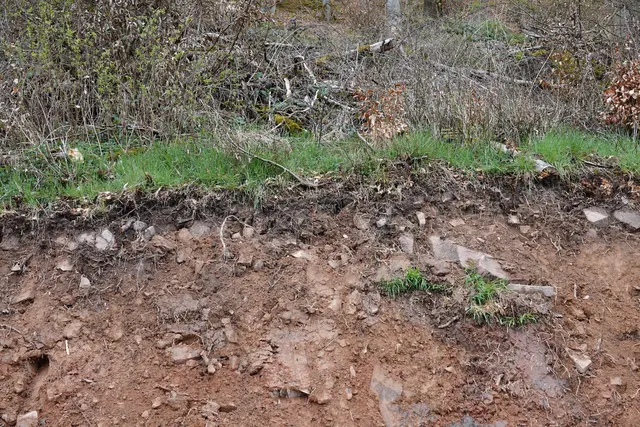 Und immer wieder blitzt der Buntsandsteinuntergrund auf – rötlich, feucht, uralt. Ein geologisches Tagebuch, das bei jedem Aushub eine neue Seite zeigt.
