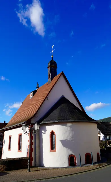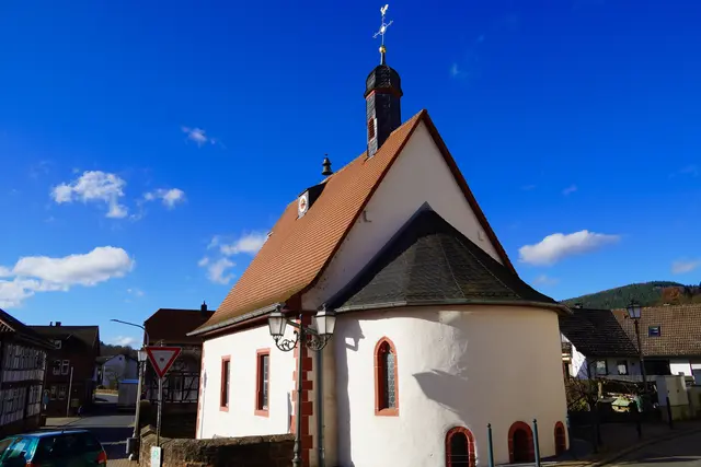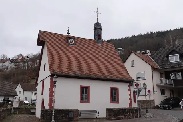 Die Valentiuskapelle am Rand von Eichenbühl ist einer jener Orte, die man leicht übersieht – und doch seit Jahrhunderten das Erftal begleiten. Unweit der Erf(a) lag einst die alte Handelsroute zwischen Maintal und Odenwaldhöhe, ein Weg voller Mühen. Die steilen Steigen, die Fuhrleuten und Kaufleuten alles abverlangten, machten die Gegend zu einem natürlichen Rastpunkt. Herbergen, Spital und kleine Krankenstube boten Schutz; die Kapelle schenkte Atem.
