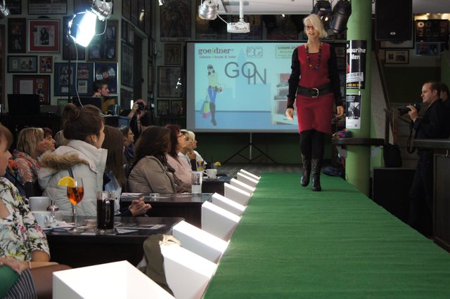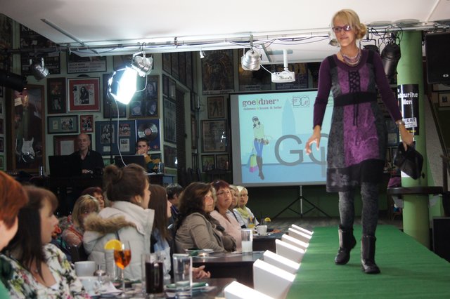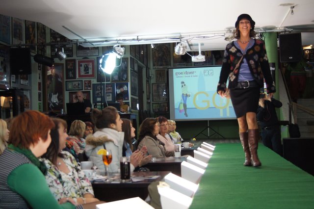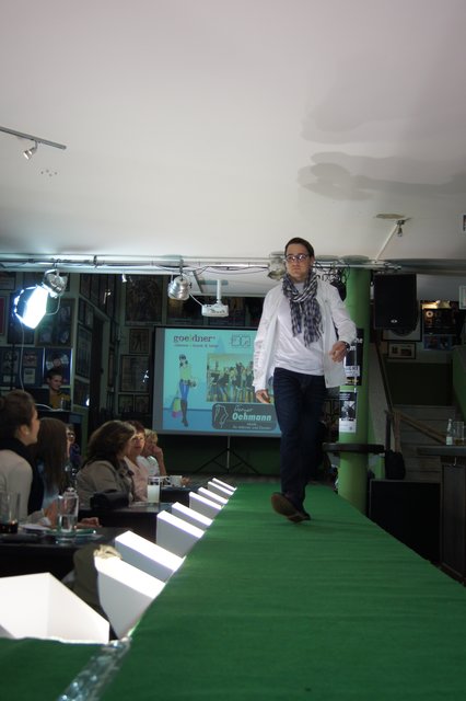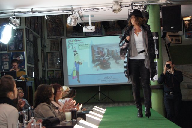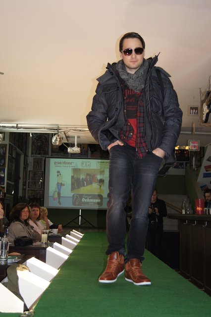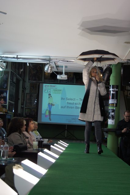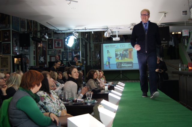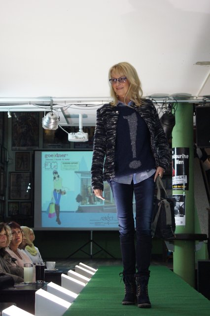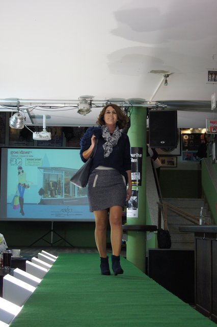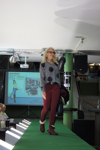 Sieben Frauen, perfekt gestylt von „Hess Frisöre“, führten komplette Outfits von „GOIN“, „select“ und „Werner Oehmann“ vor, ergänzt mit den passenden Schuhen und Stiefeln von „Schuhe-Sport Münch-Delaporte“ sowie mit Accessoires von „goeldner“ (Lederwaren, Koffer, Schulrucksäcke) und dem Brillenmacher „Ballweg & Maack“.