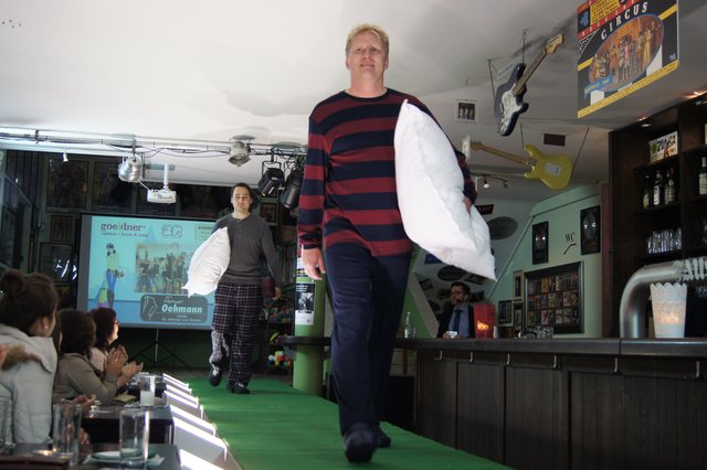 Fünf junge Männer genossen die Blicke der Damen, als sie die aktuelle Männermode von „Werner Oehmann“ vorführten und auch zeigten, was Mann unter dem Morgenmantel trägt!