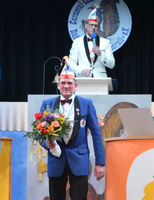 Der goldene Verdienstorden wurde ihm von der 2. Vorsitzenden Susanne Heller sowie dem Zeugwart Egon Heilmann im Rahmen der diesjährigen Prunksitzung überreicht. Die anwesenden Gäste dankten ihm mit Standing Ovations – ein eindrucksvolles Zeichen der Anerkennung für sein jahrzehntelanges Engagement und seine unermüdliche Arbeit für den CCR.