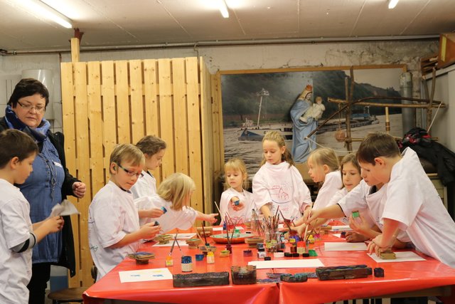 Anschließend probierten die Kinder die Technik des Blaudruckes aus. Auf diese Weise entstanden mit viel Kreativität individuelle T-Shirts. Zur Mittagszeit wechselte die Gruppe ins Hofcafé A(r)trio der AWO, wo ein leckeres Mittagessen auf sie wartete. Gestärkt und voller neuer Eindrücke kehrten die Kinder zu ihren Eltern zurück und hatten noch die Möglichkeit, deren Arbeitsplätze zu besichtigen.