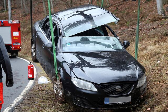 Der Fahrer erlitt nach ersten Erkenntnissen schwere Verletzungen. Er musste von den Feuerwehren Mönchberg, Großheubach und Schmachtenberg mittels hydraulischer Rettungsgeräte befreit werden, bevor er nach einer Erstversorgung in ein Krankenhaus eingeliefert wurde.