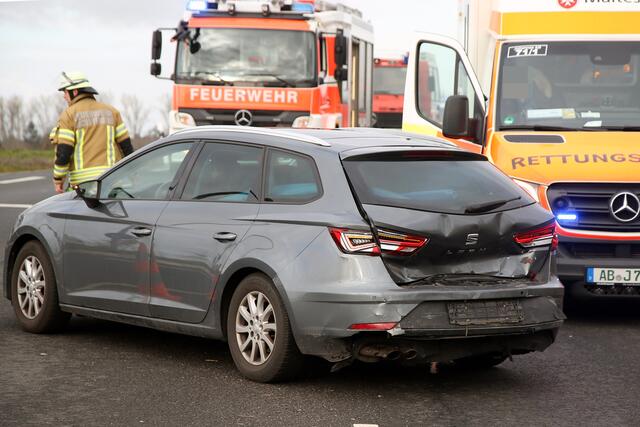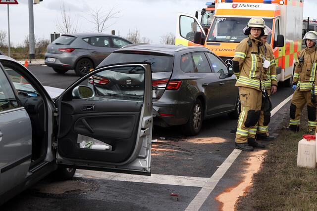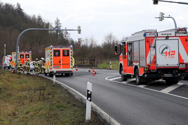 Alle vier Insassen der beiden Fahrzeuge wurden nach einer Erstversorgung durch Notarzt und Rettungsdienst zur weiteren Abklärung in ein Krankenhaus eingeliefert.