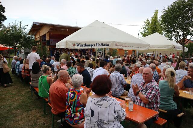 In der lauschigen Atmosphäre des Pfarrgartens werden neben kühlen Getränke auch kleine Snacks angeboten.