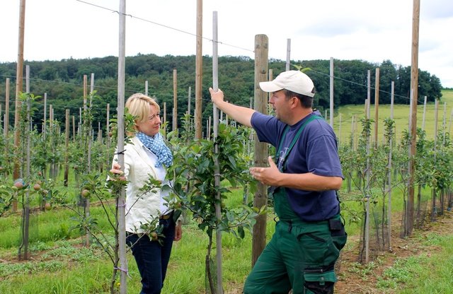 Bei ihrem erneuten Besuch der Gemeinschaftsplantage in Röllbach informierte sich die Politikerin bei Obstbauer Andreas Stegmann über den aktuellen Stand des Engerling-Befalls. „Um einen nachhaltigen Erfolg zu erzielen, muss der Engerlingpilz laut Aussagen der Experten über mehrere Jahre ausgebracht werden und sich langfristig im Boden etablieren. Deshalb ist eine Zulassung auch für die kommenden Jahre dringend notwendig“, so Fehlner. Der Beauveriapilz ist ein natürlicher Feind der Engerlinge und kann den Bestand der Larven auf ein vertretbares Maß reduzieren.