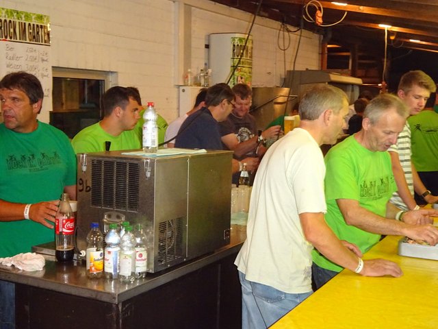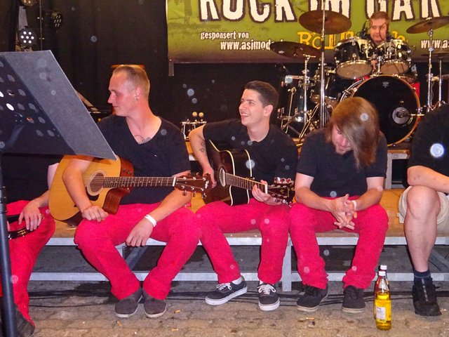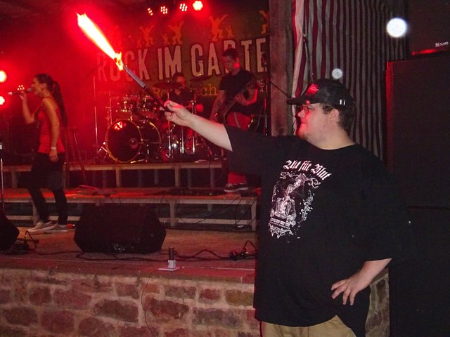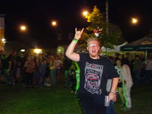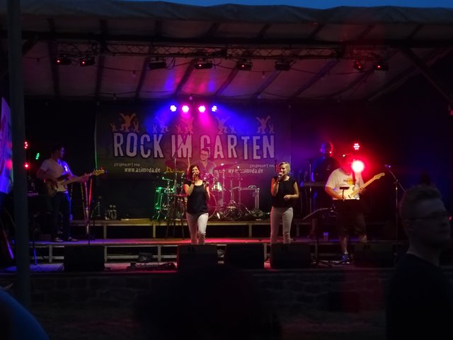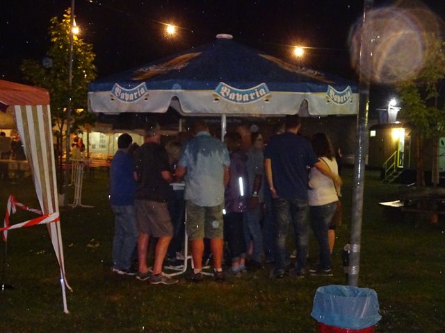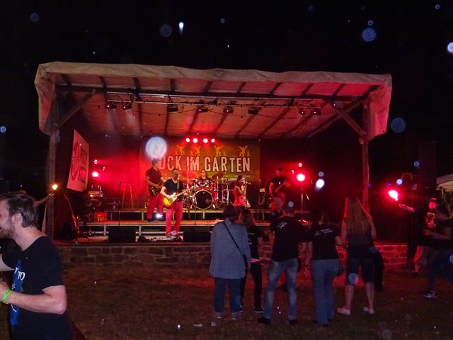 Als um 22.30 Uhr die Rockband " ROCKKREUZ " die Bühne betraten, zog kurzerhand ein Gewitter auf. Bei dem Regenschauer musste die Musik aufhören. Dies beeinflusste aber nicht die Stimmung und so wurde bei kräftigem Regenschauer unplugged weiter gespielt.