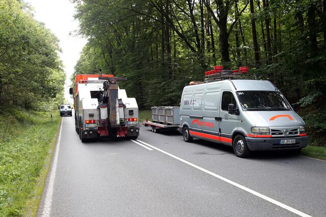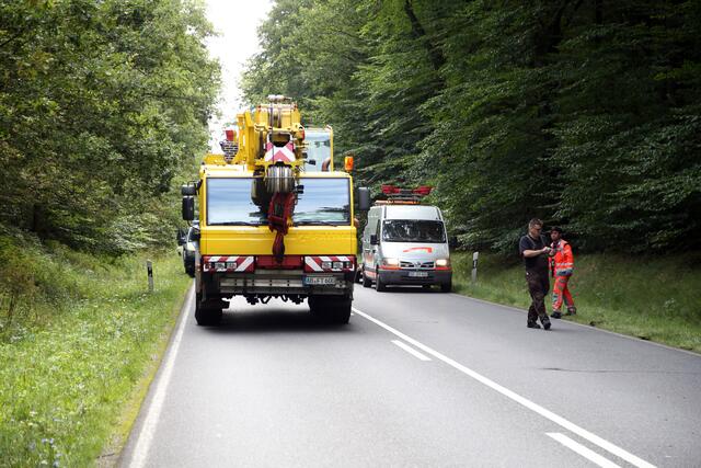 Während der Unfallaufnahme und den Bergungsarbeiten musste die Bundesstraße in beiden Richtungen komplett gesperrt werden.