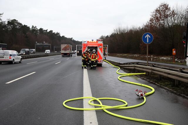 Während der Löscharbeiten mussten zwei Fahrspuren der Hauptfahrbahn und die Zufahrt zur A3 in Richtung Frankfurt gesperrt werden.