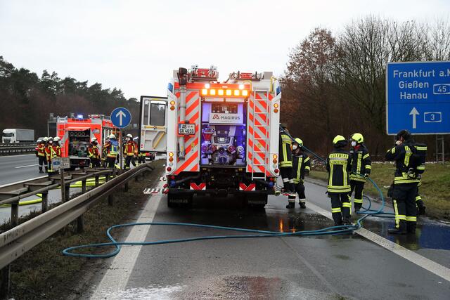 PKW-Brand auf der A3 bei Stockstadt am 18.01.2021