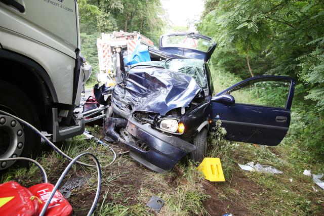 Nach dem derzeitigen Stand der Ermittlungen war eine 31-Jährige aus dem Landkreis Darmstadt-Dieburg mit ihrem Opel von Babenhausen in Richtung Aschaffenburg unterwegs. Sie geriet mit ihrem Pkw gegen 07.45 Uhr aus noch ungeklärter Ursache in den Gegenverkehr. Dort kam es zum Frontalzusammenstoß mit einem entgegenkommenden Sattelzug.