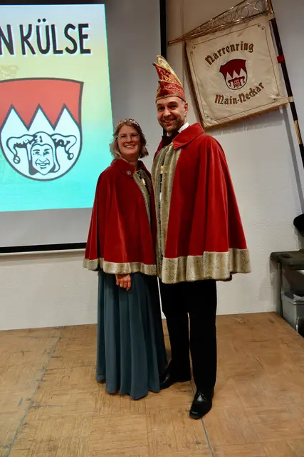 Mit einem warmen, zugleich würdevollen Auftakt begann in der Brunnenstadt die diesjährige Narrenring Kampagne. Hier Vertreter von „die Schnocke Königshofen“ mit dem Prinzenpaar Sina und Sebastian. Foto Roland Schönmüller