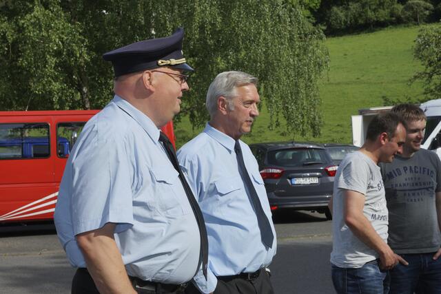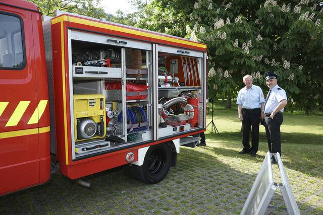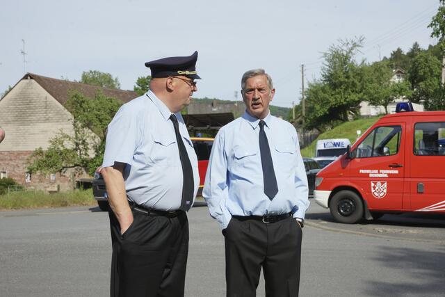 Kreisbrandrat Meinrad Lebold (links) - hier bei einem Fest in Amorbach mit Bürgermeister Peter Schmitt im Jahr 2017.  Foto Roland Schönmüller