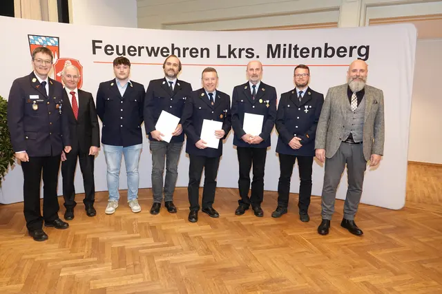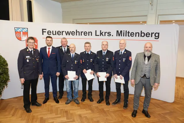 Beim Feuerwehr-Ehrenabend in der Bürgstadter Mittelmühle sind 35 Wehrleute für 25- und 40-jährige aktive Dienstzeit mit den Staatlichen Feuerwehr-Ehrenzeichen und Urkunden geehrt worden. Nach der Begrüßung durch Kreisbrandrat Martin Spilger freute sich Landrat Jens Marco Scherf, die Feuerwehrleute ehren zu können und ihnen – soweit noch nicht vorhanden – eine Bayerische Ehrenamtskarte überreichen zu können. Die Feuerwehr sei rund um die Uhr einsatzbereit, um Leben zu retten und Eigentum zu...
