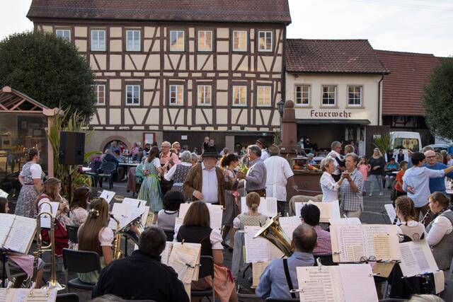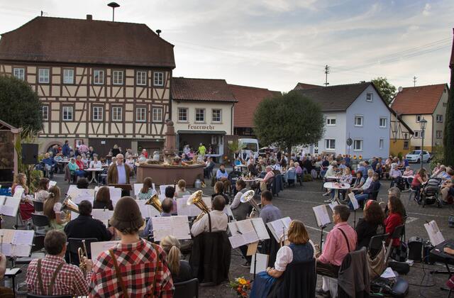 Schweinberg. „Blasmusik am Kirchplatz“ nannte sich das Konzept, mit dem der Musikverein Schweinberg am Samstag einen würdigen und schwungvollen, zugleich corona-konformen Ersatz für seine legendären „volkstümlichen Abende“ schuf. Zahlreiche Besucher – durchaus in Dirndl und Lederhose – erfreuten sich an flotten Weisen, der sympathischen „Oktoberfest-Atmosphäre“ und dem nach 20 Jahren wieder reaktivierten Hammeltanz. Nachdem MVS-Vorsitzende Dorothée Kaufmann sich über die zahlreichen Gäste...