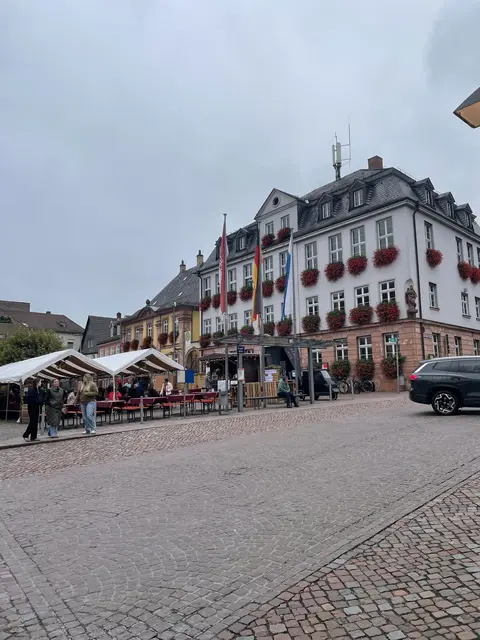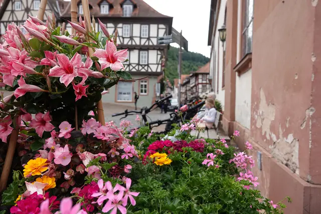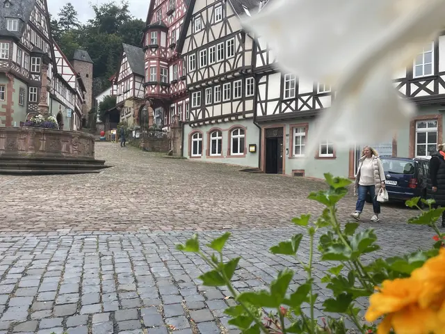 Miltenberg am Marktplatz - nicht im Dornröschenschlaf, sondern schon präsent und wachsam für kommende festliche Tage Ende August, Anfang September.