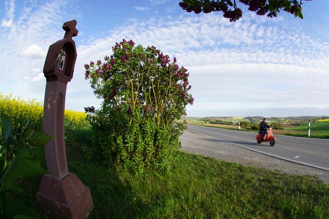 Eindrücke im Mai 2022 aus der Region Franken und Nordbaden. Nach wiederholtem Regen wächst die Natur jetzt um so intensiver. Zu den spärlichen Frühblühern haben sich inzwischen weitere Frühlingsblumen hinzugesellt.  Gelb dominiert bei den Blumen. Der Raps hat große Flächen in der Flur eingenommen.  Langsam dürfte auch der vor wenigen Tagen oder Wochen gesäte Mais auf den dunkelbraunen Äckern aufgehen. Der Löwenzahn präsentiert sich immer mehr als Pusteblumen-Parade am Wegrand. Schnecken fühlen...