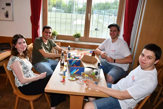 Der Bau eines Motivwagens ist eine Gemeinschaftsleistung. Hier die Aktiven des TSV Seckmauern beim Werkeln. | Foto: News Creativ