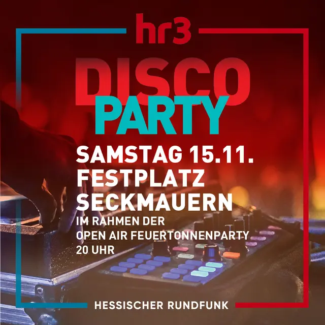 Ihr wolltet sie zurückhaben, ihr bekommt sie zurück: die legendäre hr3 Discoparty. Das hr3-Team bringt die angesagtesten Hits und die beliebtesten Klassiker aus den 80er und 90er Jahren mit zur Party des Jahres in Seckmauern. Die CCS FeuertonnenParty startet dieses Jahr bereits zum fünften Mal. Wir freuen uns sehr, diesen Herbst bei der großen Party auf dem Festplatz Seckmauern hr3 zu Gast zu haben. Um die Musik kümmert sich Gunnar Töpfer und Jan Reppahn. Die kennt ihr als Moderatoren aus dem...