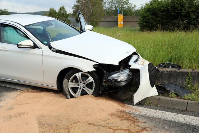 Nur noch Schrottwert hat ein Mercedes nach einem Verkehrsunfall am Sonntagmorgen in Goldbach. Gegen 6.45 Uhr fuhr ein 25-jähriger Mercedesfahrer von der A3 kommend in den Kreisverkehr oberhalb der Autobahn. Hier fuhr er geradeaus weiter, querte den Grünstreifen und prallte auf der gegenüberliegenden Seite gegen eine Mauer. Während am Mercedes wirtschaftlicher Totalschaden entstand kam der Fahrer nach ersten Informationen mit leichten Verletzungen davon. Während der Unfallaufnahme stellten die...