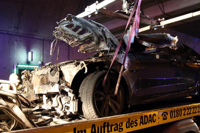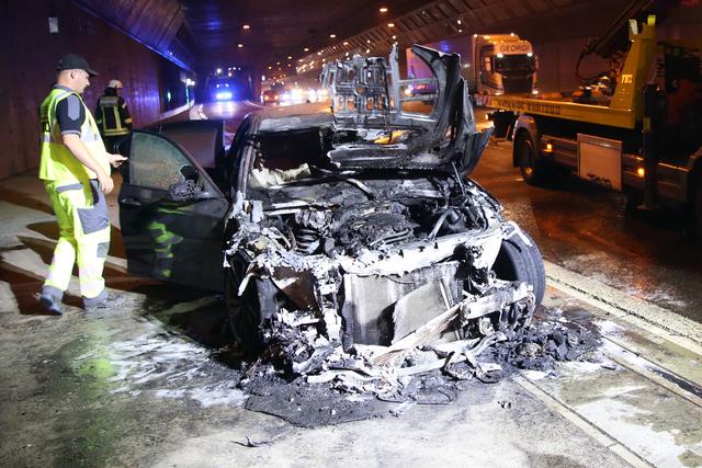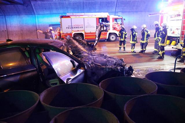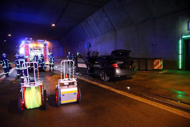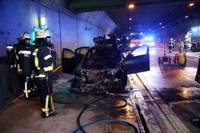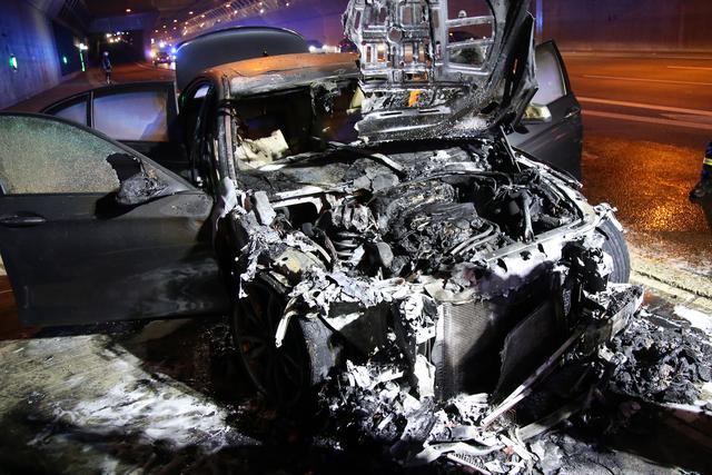 PKW-Brand in der Autobahneinhausung bei Goldbach am 20.09.2020