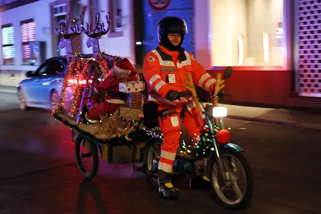 Weihnachtsmann reißt mit Blaulicht
