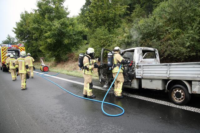 Rund eine halbe Stunde musste die B469 in Richtung Miltenberg bei Obernburg aufgrund eines Fahrzeugbrandes gesperrt werden. Kurz vor 7.30 Uhr bemerkte der Fahrer eines VW-Transporters technische Probleme an seinem Fahrzeug und hielt dieses am Fahrbahnrand an. Als er Flammen im Motorraum bemerkte brachte er sich in Sicherheit und rief den Notruf. Als die Feuerwehr eintraf hatte der Brand bereits auf den Innenraum übergegriffen. Schnell konnten die Wehrleute den Brand ablöschen. Das Auto hat...