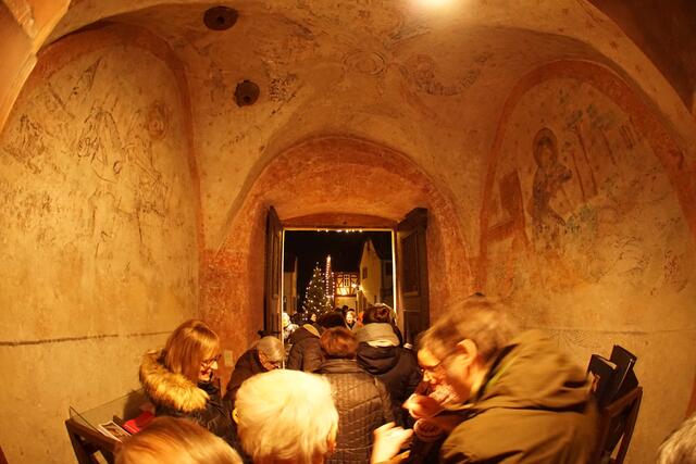 Ganz gespannt hören die Gäste dem Nikolaus zu.