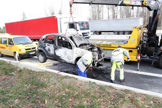 PKW-Brand auf der A3 bei Weibersbrunn am 14.01.2020