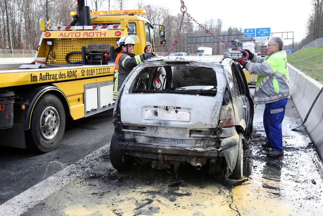 Eine technische Ursache sorgte am Dienstagvormittag vermutlich für einen PKW-Brand auf der A3 bei Weibersbrunn.