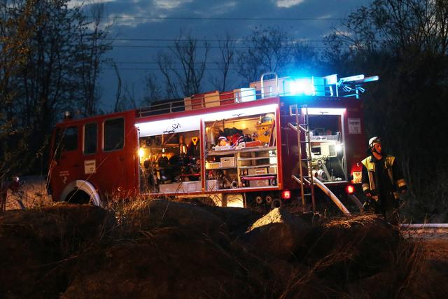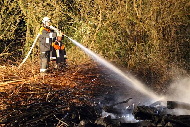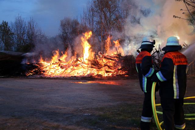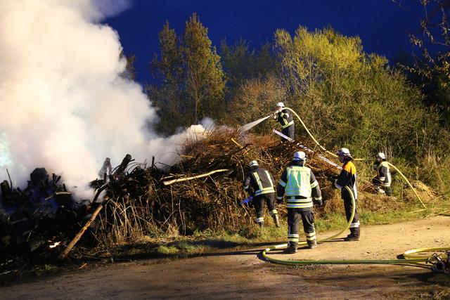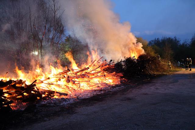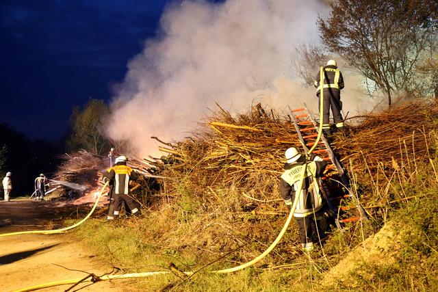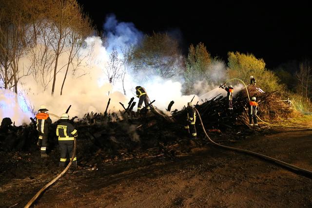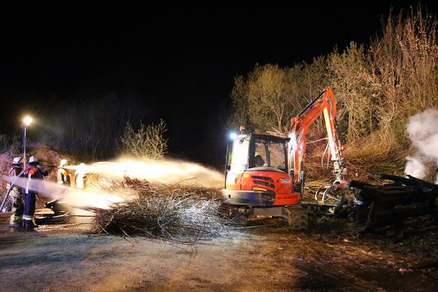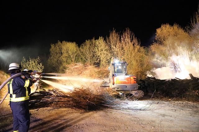 Die Wehrleute konnten eine weitere Brandausbreitung verhindern und das Feuer schnell unter Kontrolle bringen. Um den Brand endgültig ablöschen zu können musste das Brandgut mittels Bagger auseinandergezogen werden.