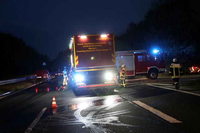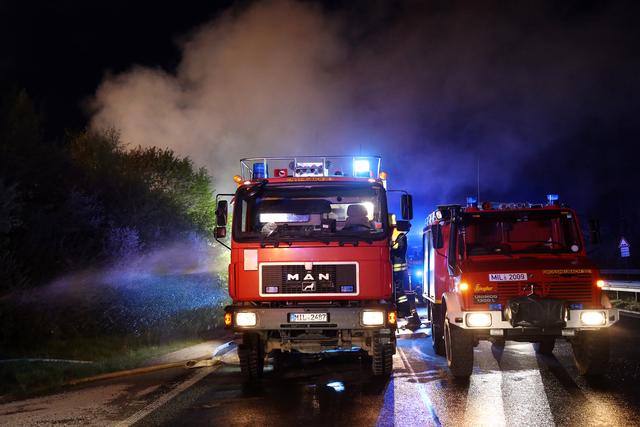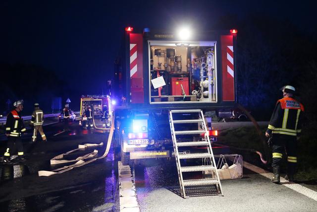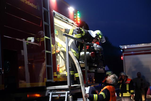 Kurz vor 20.00 Uhr wurde die Feuerwehr Wörth zu dem Brand an der Anschlussstelle Wörth/Seckmauern alarmiert. Als die ersten Kräfte eintrafen schlugen die Flammen bereits lichterloh in den Himmel und eine starke Rauchentwicklung war von weitem zu sehen.