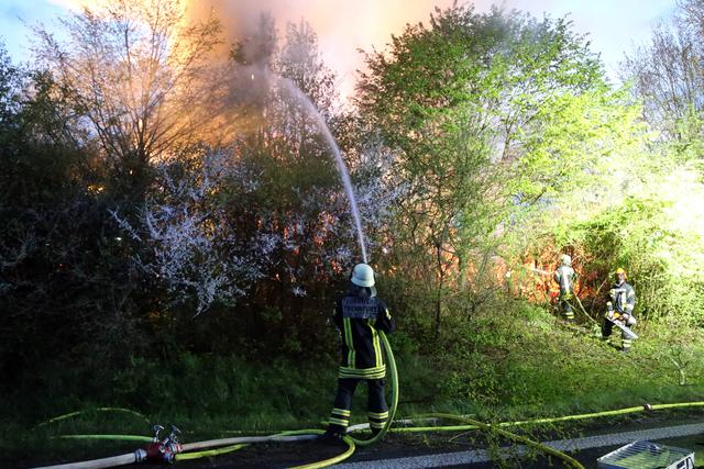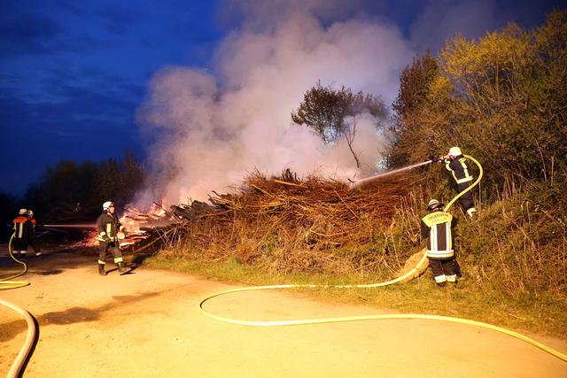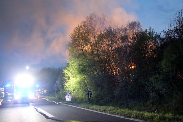 Lichterloh stand am Donnerstagabend ein Holzlager direkt neben der B469 in Flammen.
